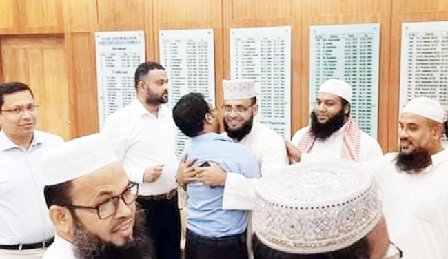 ষ্টাফ রিপোর্টার\ চাকরি হারানোর ৫১ ঘণ্টা পর অবশেষে কুমিল্লা জেলা প্রশাসনের হস্তক্ষেপে চাকরি ফিরে পেয়েছেন কুমিল্লার লালমাই উপজেলার ভাটরা কাছারী কেন্দ্রীয় মসজিদের ইমাম ও খতিব মাওলানা আবুল বাশার। গত রোববার মাগরিবের নামাজ থেকে তিনি মসজিদে ইমামতি শুরু করেছেন। চাকরি ফিরে পাওয়ার পর প্রথম ওয়াক্তে (মাগরিব) তার পেছনে নামাজ আদায় করেছেন সেই লালমাই উপজেলা নির্বাহী কর্মকর্তা (ইউএনও) মো. ফোরকান এলাহি অনুপম। সন্ধ্যায় ওই মসজিদের মুয়াজ্জিন হাফেজ পারভেজ হোসেন ও ইমামের সঙ্গে কথা বলে বিষয়টি নিশ্চিত হওয়া গেছে।