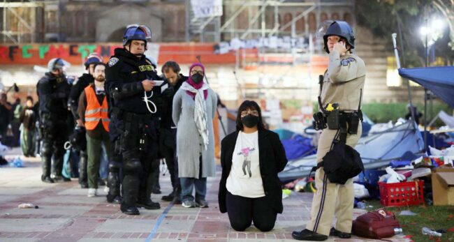 সর্বশেষ গত মঙ্গলবার সকালে ইউনিভার্সিটি অব ক্যালিফোর্নিয়া লস অ্যাঞ্জেলেসে (ইউসিএলএ) অভিযান চালায় পুলিশ। সেখানে বিক্ষোভকারীদের ক্যাম্পাস ছেড়ে যাওয়ার অনুরোধ করলে তারা তা অমান্য করেন। এসময় অন্তত ২০০ জনকে গ্রেপ্তার করা হয়। এই বিশ্ববিদ্যালয়ের মতো অন্যান্য বিশ্ববিদ্যালয়ের বিক্ষোভকারীরাও ইসরায়েলের সঙ্গে বা গাজা যুদ্ধকে সমর্থনকারী প্রতিষ্ঠানের সঙ্গে ব্যবসা বন্ধে আহ্বান জানান। যুক্তরাষ্ট্রে শিক্ষার্থীদের এমন ব্যাপক বিক্ষোভ এ শতকে আর দেখা যায়নি।