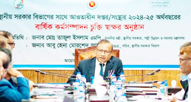 ষ্টাফ রিপোর্টার\ স্থানীয় সরকার, পল্লী উন্নয়ন ও সমবায় মন্ত্রী মো. তাজুল ইসলাম বলেছেন, উন্নত দেশ গড়ার স্বপ্ন পূরণে দুর্নীতি একটি বড় প্রতিবন্ধকতা। দুর্নীতিকে প্রশ্রয় দিব না- এই মানসিকতা আমাদের সবার থাকতে হবে। গত বৃহস্পতিবার (২৭শে জুন) স্থানীয় সরকার বিভাগের আওতাধীন ২০টি দপ্তর/সংস্থা/সিটি করপোরেশনের সঙ্গে ২০২৪-২৫ অর্থবছরের বার্ষিক কর্মসম্পাদন চুক্তি স্বাক্ষর অনুষ্ঠানে প্রধান অতিথির বক্তব্যে তিনি এ কথা বলেন।