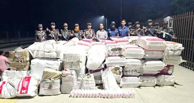 এ সময় ২ কোটি ৭১ লাখ ৫ হাজার ৪০০ টাকা মূল্যের বিভিন্ন প্রকার বাজি, বাসমতি চাল, ফুচকা এবং কসমেটিকস সামগ্রী জব্দ করা হয়। তবে মালপত্রের সঙ্গে কাউকে আটক করা যায়নি।