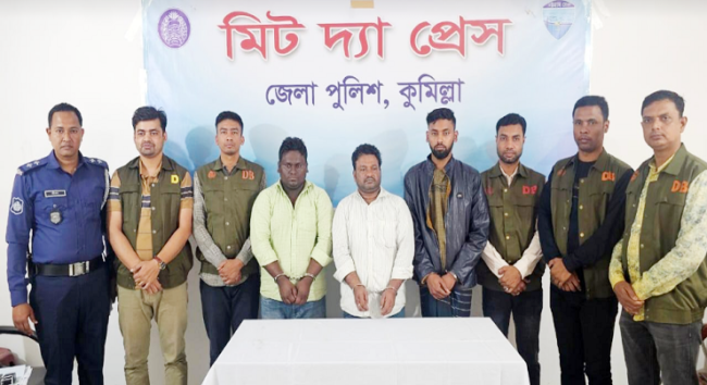 গ্রেপ্তারকৃত ব্যক্তিরা হলেন- কুমিল্লার আদর্শ সদর উপজেলার আড়াইওরা এলাকার মো. মোশারফ হোসেন (৪২), একই জেলার মুরাদনগর উপজেলার বাখরনগর এলাকার জাহাঙ্গীর আলমের ছেলে মো. শরিফুল ইসলাম শরিফ (২২) ও ব্রাহ্মণ চাপিতলা এলাকার মো. ফয়সাল মিয়া (২৮)।