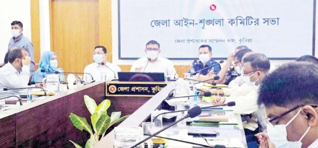 কুমিল্লা জেলা প্রশাসক ও জেলা ম্যাজিস্ট্রেট মোঃ আমিরুল কায়সারের সভাপতিত্বে আইন-শৃঙ্খলা কমিটির সভায় অংশ নেন, কুমিল্লা জেলা পুলিশ সুপার মোহাম্মদ নাজির আহমেদ,  বিজিবি ১০ ব্যাটালিয়নের অধিনায়ক লেফটেন্যান্ট কর্নেল মীর আলী এজাজ, সিভিল সার্জন মোহাম্মদ আলী নূর বশির আহমেদ, কুমিল্লা সিটি কর্পোরেশনের সচিব মোহাম্মদ মামুন, কুমিল্লা আদালতের পিপি কাইমুল হক রিঙ্কু, বিএনপি কুমিল্লা বিভাগীয় সাংগঠনিক সম্পাদক মোস্তাক মিয়া, জামায়েত ইসলামী কুমিল্লা মহানগর কাজী দ্বীন মোহাম্মদ, বৈষম্য বিরোধী ছাত্র আন্দোলন কুমিল্লা মহানগরের সদস্য সচিব মুহাম্মদ রাশেদুল ইসলামসহ বিভিন্ন দপ্তরের প্রধান, উপজেলা নির্বাহী কর্মকর্তাগণ, রাজনৈতিক প্রতিনিধি এবং সুশীল সমাজের প্রতিনিধিগণ। আইন-শৃঙ্খলা কমিটির সভায় কুমিল্লা জেলায় করোনা পরিস্থিতি, সীমান্ত পরিস্থিতি,  কুমিল্লা সিটি কর্পোরেশনের যানজট নিরসন এবং বাণিজ্য মেলা,  নিরবিচ্ছিন্ন বিদ্যুৎ সংযোগসহ বিভিন্ন গুরুত্বপূর্ণ বিষয় নিয়ে আলোচনা ও সিদ্ধান্ত হয়।