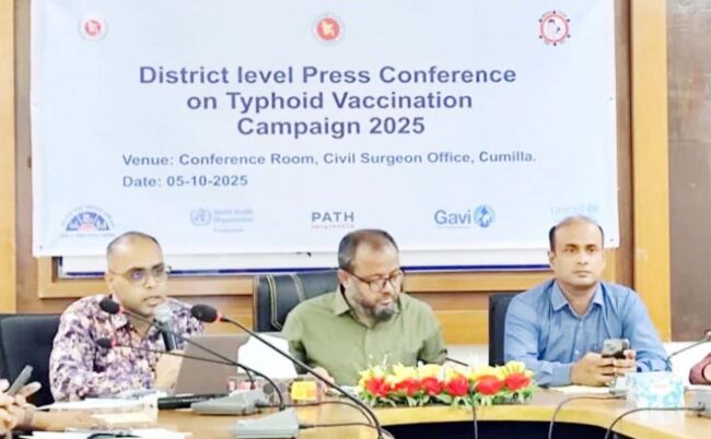 কুমিল্লায় ১২ লাখ ৬৮ হাজার শিশু-কিশোরকে টাইফয়েড টিকা প্রদান সংক্রান্তে সিভিল সার্জনের সাংবাদিক সম্মেলন
