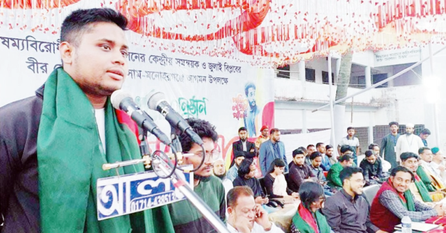 গত শনিবার বিকেলে লাকসাম পাইলট উচ্চবিদ্যালয় মাঠে বৈষম্যবিরোধী ছাত্র আন্দোলনের কেন্দ্রীয় সমন্বয়ক ও জুলাই বিপ্ল­বের বীর সেনানীদের লাকসাম-মনোহরগঞ্জে আগমন উপলক্ষে সংবর্ধনা অনুষ্ঠান ও মতবিনিময় সভায় প্রধান অতিথির বক্তব্যে এসব কথা বলেন বৈষম্যবিরোধী ছাত্র আন্দোলনের আহ্বায়ক হাসনাত আবদুল্লাহ ।