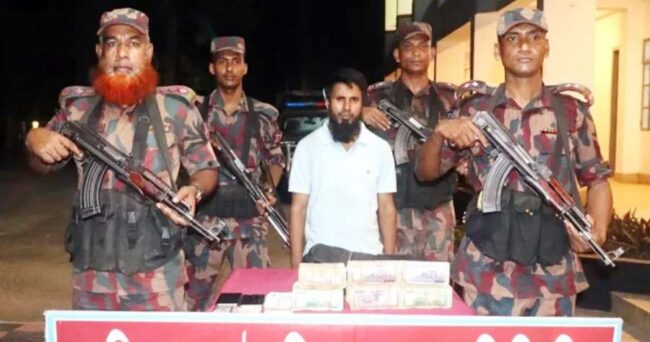 এ সময় বিজিবির টহল দল সীমান্ত শূন্য লাইন থেকে আনুমানিক ১০০ গজ বাংলাদেশের অভ্যন্তরে বিষ্ণপুর নামক স্থানে বাংলাদেশি নগদ টাকা হুন্ডির মাধ্যমে ভারতে পাচারকালে ফোরকান উদ্দিনকে (৩৫) আটক করে। তার কাছ থেকে হুন্ডির ২৮ লাখ টাকা এবং ২টি মোবাইল ফোন জব্দ করা হয়। আটক ফোরকান জেলার ব্রাহ্মণপাড়া উপজেলার তেতাভুমি গ্রামের বাবুল মিয়ার ছেলে।