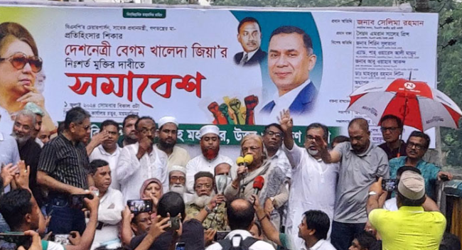 সেখানে তিনি আরও বলেন, আমাদের আপোষহীন নেত্রীকে চক্রান্ত করে তারা মেরে ফেলার চেষ্টা করছে। আমাদের নেত্রীর মুক্তি না হলে এই আন্দোলন ভয়াবহ রূপ ধারণ করবে, এর পরিণতি ভালো হবে না। আমাদের নেত্রী জেলখানায় মরতে বসেছেন। আমরা তাকে মরতে দেব না। আল্লাহর কাছে ফরিয়াদ করি, আল্লাহ তুমি শেখ হাসিনার পতন ঘটাও। গ্রামে-গঞ্জে খালেদা জিয়ার মুক্তির আওয়াজ উঠেছে। তাই আসুন আমরা সবাই প্রতিজ্ঞা করি দেশনেত্রীর মুক্তি না হওয়া পর্যন্ত আমরা কেউ রাজপথ ছাড়ব না।