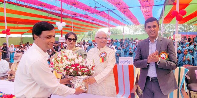 অনুষ্ঠানে স্বাগত বক্তব্য রাখেন, গণউদ্যোগ বালিকা উচ্চ বিদ্যালয় কলেজের অধ্যক্ষ রনজিত চন্দ্র দাশ।