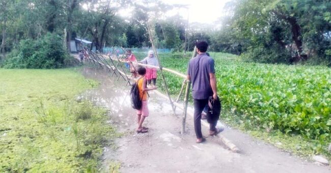 উত্তর হাওলা গ্রামের বাসিন্দা রবিউল ইসলাম বলেন, বর্ষা আসলেই আমাদের চিন্তার কোনো শেষ থাকে না! দিনের পর দিন চিন্তা ও হতাশার মধ্যে কাটাতে হয় আমাদের। চলার কোনো উপায় মিলাতে না পেরে সর্বশেষ গ্রামবাসী সবাই মিলে রাস্তার ওপরে বাঁশ দিয়ে সাঁকো তৈরি করে জরুরি কাজে ঘরের বাইরে বের হচ্ছি।