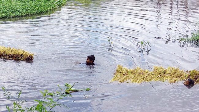 নীচু এলাকায় ধান কেটে একেকটি আঁটির সঙ্গে বেঁধে পানিতে ভাসিয়ে শুকনা জায়গায় উঠানোর চেষ্টা করা হচ্ছে। বেশি পানিতে কৃষক সাঁতার কেটে আউশের আঁটি ডাঙায় তুলতেও দেখা গেছে। এতে চলতি আউশ মৌসুমের উফশী জাতের ধানের বীজ সংরক্ষণ করা প্রায় অসম্ভব হয়ে পড়েছে।