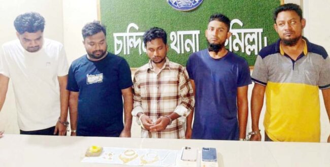 আটককৃতরা হলো- চান্দিনা উপজেলা সদরের মহারং মুন্সিবাড়ি এলাকার মৃত আজিজ মুন্সির ছেলে সোহেল মুন্সি (৩৯)। সে নিজেকে চান্দিনা পৌরসভা শ্রমিকদল যুগ্ম আহবায়ক ও ১নং ওয়ার্ড শ্রমিকদল সভাপতি বলে দাবী করেন। অন্যরা হলো- মুন্সিগঞ্জ জেলার সিরাজদিখান থানার মালাপদিয়া গ্রামের মৃত আব্দুল লতিফ শেখের ছেলে সোহাগ আহমেদ (৩৫), টাঙ্গাইল জেলার মির্জাপুর থানার হাড়িয়া গ্রামের মো. চাঁন মিয়ার ছেলে মো. রাসেল মিয়া (২৯), নরসিংদী জেলার রায়পুরা থানার বীর চরমধুয়া গ্রামের মো. লিয়াকত আলীর ছেলে মো. হানিফ (২৭) ও কুমিল্লার চান্দিনা উপজেলার শ্রীমন্তপুর গ্রামের মো. ইসমাইলের ছেলে মো. ফয়সাল (২৭)।