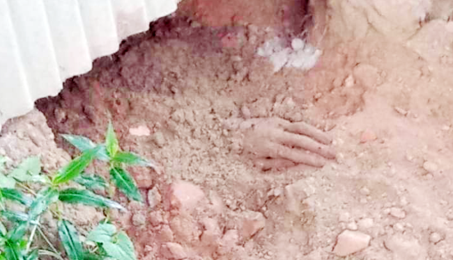 নিজস্ব প্রতিনিধি\ কুমিল্লায় পিটিয়ে হত্যার পর ঘরের মধ্যেই মাটিচাপা দিয়ে রেখেছিলেন লাশ। শিয়াল-কুকুরে মাটি আচঁড়ে বের করে ফেলে একটি হাত। বের হওয়া অর্ধগলিত হাত থেকে সৃষ্টি হয় তীব্র দুর্গন্ধ। দুর্গন্ধের উৎপত্তি খুঁজতে গিয়ে দেখেন গর্তে মানুষের হাত। ঘটনাটি ঘটে কুমিল্লার দেবিদ্বার উপজেলার বারুর-পিরোজপুর গ্রামের সীমান্তে।