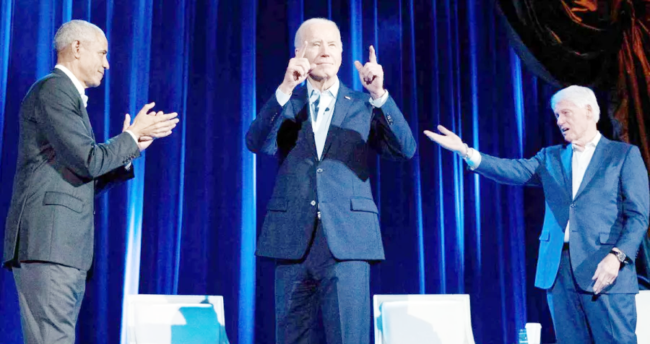ষ্টাফ রিপোর্টার\ আগামী নভেম্বরের মার্কিন প্রেসিডেন্ট নির্বাচনে সম্ভাব্য রিপাবলিকান প্রার্থী ডোনাল্ড ট্রাম্পকে হারাতে এক মঞ্চে এসেছেন প্রেসিডেন্ট জো বাইডেন ও তার দুই পূর্বসূরি প্রেসিডেন্ট বারাক ওবামা ও বিল ক্লিনটন। তারা ট্রাম্পকে আমেরিকার গণতন্ত্রের জন্য হুমকি হিসেবে উল্লেখ করেন। এই সমাবেশে প্রেসিডেন্ট বাইডেন আড়াই কোটি ডলারের তহবিল তুলতে সক্ষম হন। এদিকে সমাবেশে প্রেসিডেন্ট বাইডেনকে গণহত্যার সমর্থনকারী উল্লেখ করে ¯েøাগান দেন ফিলিস্তিনি আমেরিকানরা।