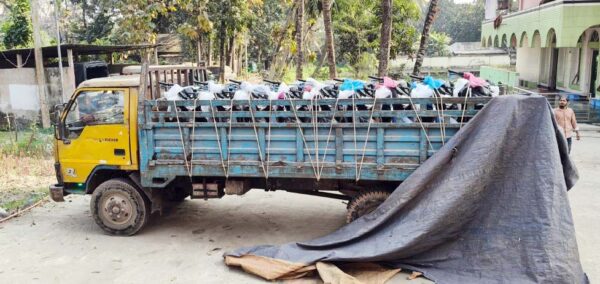 পুলিশ, এলাকাবাসী ও প্রত্যক্ষদর্শী সূত্রে জানা গেছে, ওইদিন সকাল সাড়ে ৯টার দিকে একটি ট্রাক লাকসাম উপজেলার মুদাফরগঞ্জ (দক্ষিণ) ইউনিয়নের ফুলহরা গ্রামে প্রবেশ করে। এ সময় ট্রাকটি সড়কের পাশে রেখে ২-৩ জন লোক এদিক-ওদিক পায়চারি করছিল। এতে স্থানীয় লোকজন তাদের জিজ্ঞাসাবাদ করলে ওই লোকগুলো অসংলগ্ন কথাবার্তা বলেন। স্থানীয়রা তখন ট্রাকের ভেতর কি আছে দেখতে গেলে ৩ জনই দৌঁড়ে পালিয়ে যায়। তারা ট্রাকের ভেতর নতুন ৯টি ইয়ামাহা এফজেডএস মোটরসাইকেল দেখতে পেয়ে চোরাই মোটরসাইকেল সন্দেহে ট্রাক চালককে আটক করে জাতীয় জরুরি সেবা ৯৯৯ নম্বরে কল দেয়। সংবাদ পেয়ে লাকসাম থানা পুলিশের উপ-পরিদর্শক (এসআই) মো. সিরাজুল ইসলাম ঘটনাস্থলে পৌঁছে মোটরসাইকেল ভর্তি ট্রাকটি জব্দ করে থানায় নিয়ে আসে এবং ট্রাকের চালককে গ্রেপ্তার করে।