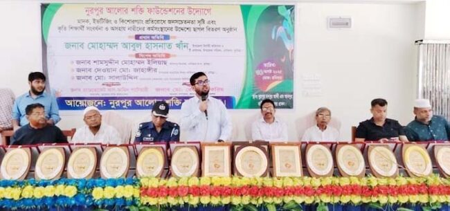 গত রোববার (৩১শে আগস্ট) দুপুরে উপজেলার নুরপুর মনসুর আলী এন্ড আব্দুর বারী উচ্চ বিদ্যালয় হল রুমে আলোর শক্তি ফাউন্ডেশনের সভাপতি অ্যাডভোকেট আল আমিন পাটোয়ারীর সভাপতিত্বে ও সাধারণ সম্পাদক রেজাউল করিমের সঞ্চালনায় সংবর্ধনা অনুষ্ঠিত হয়।
