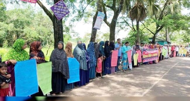 নিজস্ব প্রতিনিধি\ কুমিল্লা জেলার দেবিদ্বার উপজেলায় ৪ বছরের এক শিশুকে ধর্ষণ চেষ্টার অভিযোগে অভিযুক্ত হাসানকে (১৮) দুই সপ্তাহেও গ্রেফতার করতে না পারায় বিক্ষোভ মিছিল, মানববন্ধন ও প্রতিবাদ সভা করেছে স্থানীয় এলাকাবাসী। ‘ভূমিহীন সংগঠন’-এর নেতৃত্বে গত সোমবার (২১শে জুলাই) বুড়িরপাড় বাজারে এই কর্মসূচি পালিত হয়।