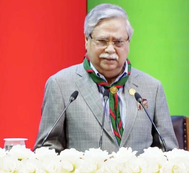 বাসস\ রাষ্ট্রপতি মোঃ সাহাবুদ্দিন স্বাধীনতার সুফল জনগণের দোরগোড়ায় পৌঁছাতে নতুন প্রজন্মকে উপযুক্ত শিক্ষা দিয়ে সুনাগরিক হিসাবে গড়ে তুলতে স্কাউট নেতৃবৃন্দের প্রতি আহ্বান জানিয়েছেন। গত রোববার রাজধানীর ওসমানী স্মৃতি মিলনায়তনে বাংলাদেশ স্কাউটস এর জাতীয় কাউন্সিলের ৫২তম বার্ষিক সাধারণ সভার উদ্বোধনী অনুষ্ঠানে প্রধান অতিথির ভাষণে তিনি এ আহ্বান জানান। রাষ্ট্রপতি ও চীফ স্কাউট বলেন, দ্রæত পরিবর্তনশীল বিশ্বের সাথে তাল মিলিয়ে এগিয়ে যেতে তথ্য-প্রযুক্তি, কম্পিউটার, আন্তর্জাতিক বিভিন্ন ভাষাসহ জ্ঞান-বিজ্ঞানের সর্বশেষ প্রায়োগিক কলা-কৌশল রপ্ত করতে আমাদের তরুণ প্রজন্মকে উদ্বুদ্ধ করতে হবে। কিশোর ও তরুণ প্রজন্মকে সঠিক পথে পরিচালিত করে ‘স্মার্ট নাগরিক’ হিসেবে গড়ে তুলতে স্কাউট প্রশিক্ষণ কার্যকর ভূমিকা রাখতে পারে উল্লেখ করে তিনি বলেন, “দেশের শিশু, কিশোর ও যুব সমাজকে ব্যাপকভাবে স্কাউটিংয়ের আওতায় আনার লক্ষ্যে কার্যকর উদ্যোগ গ্রহণ করতে হবে।” রাষ্ট্রপতি সাহাবুদ্দিন গতানুগতিক স্কাউটিং কার্যক্রমের পাশাপাশি সামাজিক বিভিন্ন সমস্যার সমাধানে এবং জনকল্যাণমূলক বিভিন্ন কার্যক্রমে জনমত গড়ে তুলতেও স্কাউট নেতৃবৃন্দকে এগিয়ে আসার তাগিদ দেন।