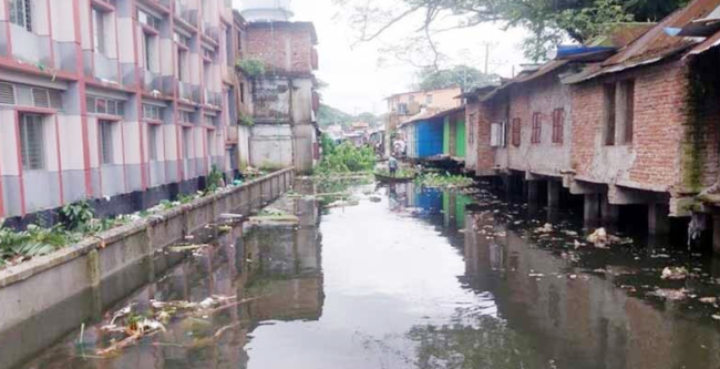 স্থানীয়দের অভিযোগ, জেলা পরিষদের নামে খাল দখল করে স্থাপনা নির্মাণ ও বাজারের বর্জ্য ফেলে এ খালটিকে ময়লার ভাগাড়ে পরিণত করা হয়। কিছুদিন আগে খাল সংস্কার করতে আসলে অবৈধ দখলকারীরা এতে বাধা দেয়। ফলে ঠিকাদার কাজ না করেই টাকা তুলে নিয়ে যান। এতে সাম্প্রতিক বন্যায় পানি আটকে পুরো এলাকা প্লাবিত হয়।