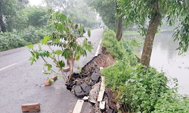 পাড় না রেখে ঘেরে মাছ চাষ ধসে পড়ছে পাকা সড়ক