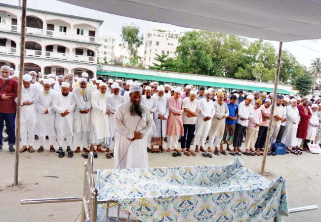 ষ্টাফ রিপোর্টার\ লাকসাম পৌরসভার উত্তর লাকসামের বাসিন্দা লাকসাম পাইলট সরকারি উচ্চ বিদ্যালয়ের সাবেক শিক্ষক মরহুম আইউব আলী স্যারের কনিষ্ঠ ছেলে নাঙ্গলকোট হাছান মেমোরিয়াল সরকারি ডিগ্রি কলেজের অবসরপ্রাপ্ত শিক্ষক প্রফেসার আফতাব মহিব উল্লাহ’র নামাজে জানাযা গত সোমবার বাদ আছর লাকসাম পাইলট সরকারি উচ্চ বিদ্যালয় মাঠে অনুষ্ঠিত হয়। পরে হাউজিং এস্টেটস্থ পারিবারিক কবর স্থানে দাফন করা হয়। জানাযা নামাজে ইমামতি করেন, লাকসাম পূর্ব বাজার জামে মসজিদের খতিব মাওলানা আবদুল ওয়াদুদ। জানাযা পূর্বে বক্তব্য রাখেন, লাকসাম পৌরসভার মেয়র অধ্যাপক মোঃ আবুল খায়ের, নাঙ্গলকোট হাছান মেমোরিয়াল ডিগ্রি কলেজের সাবেক অধ্যক্ষ ছাদেক হোসেন ভ‚ঁইয়া, মরহুমের ভাগিনা ডাঃ আবদুল্লাহ তারেক ভ‚ঁইয়া। জানাযায় অন্যান্যের মধ্যে উপস্থিত ছিলেন, নাঙ্গলকোট আফছারুল উলুম কামিল মাদরাসার সাবেক অধ্যক্ষ মাওলানা আবদুল কাদের, লাকসাম পৌরসভার কাউন্সিলর আলহাজ আবদুল আজিজ, সাবেক কাউন্সিলর আফতাব উল্লাহ চৌধুরী ঝন্টু, নাঙ্গলকোটের হেসাখাল কলেজের অধ্যক্ষ আবদুল মতিন, লাকসাম মডেল কলেজের সাবেক অধ্যক্ষ মোঃ আবু তাহের, প্রফেসর হুমায়ুন কবির, প্রফেসর আবুল কালাম, প্রভাষক বিলাল হোসেন মালেকী, লাকসাম পাইলট সরকারি উচ্চ বিদ্যালয়ের সাবেক ভারপ্রাপ্ত প্রধান শিক্ষক মাহবুবুর রহিম, সিনিয়র শিক্ষক আবুল কাশেম, আবদুর রহমান বাদলসহ লাকসাম বাজারের ব্যবসায়ী, মরহুমের আতœীয়-স্বজন, বন্ধু-বান্ধব প্রমুখ।
