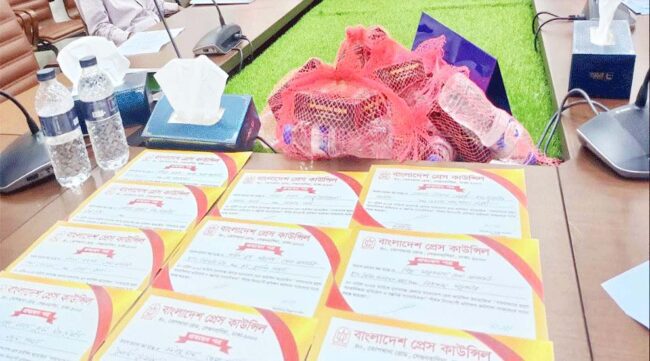 ষ্টাফ রিপোর্টার\ বাংলাদেশ প্রেস কাউন্সিলের কর্মশালায় চোরাকারবার ও অপ-সাংবাদিকতার সঙ্গে যুক্ত ব্যক্তিদের সনদপত্র দেয়ায় কর্মশালায় পাওয়া সনদ ফেরত দিয়েছেন সুনামগঞ্জ শহরে কর্মরত ১১ জন টেলিভিশন সাংবাদিক। গত ২০শে এপ্রিল শনিবার দুপুরে জেলা প্রশাসক কার্যালয়ে প্রশিক্ষণের সমাপনী অনুষ্ঠানে প্রেস কাউন্সিলের চেয়ারম্যান বিচারপতি নিজামুল হক নাসিমের কাছে একযোগে সনদপত্রসহ প্রশিক্ষণ উপকরণ ও খাবার ফেরত দিয়ে কর্মশালাস্থল থেকে বের হয়ে আসেন বিক্ষুব্ধ সাংবাদিকরা।
