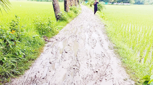 পথচারী দিদার বলেন, ‘আমি এ এলাকার জামাই। বৃষ্টির দিনে শ্বশুর বাড়িতে আসলে হাতে জুতা আর হাঁটু পর্যন্ত প্যান্ট গোটাতে হয়। আমার বিয়ের পর থেকে রাস্তার একই অবস্থা দেখে আসছি।’