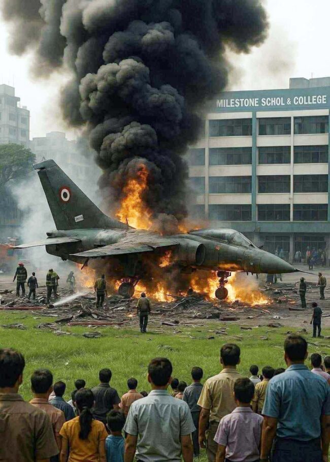 প্রসঙ্গত, সোমবার দুপুর ১টার পর রাজধানীর উত্তরায় দুর্ঘটনায় পড়ে বাংলাদেশ বিমান বাহিনীর একটি প্রশিক্ষণ বিমান। বিমানটি উত্তরার মাইলস্টোন স্কুল অ্যান্ড কলেজের একটি ভবনে গিয়ে পড়ে এবং বিধ্বস্ত হয়।