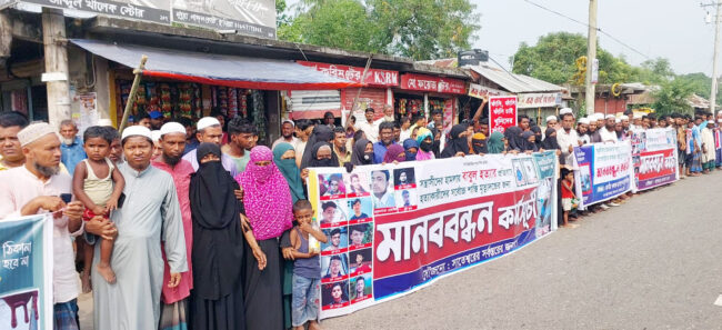 মনোহরগঞ্জে বাবুল হত্যাকারীদের দৃষ্টান্তমুলক শাস্তির দাবীতে সর্বস্তরের মানুষের মানববন্ধন