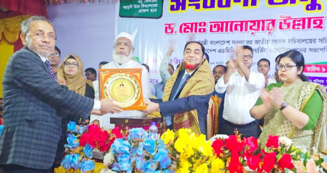 মনোহরগঞ্জে সচিব আনোয়ার উল্ল্যাহকে সংবর্ধনা