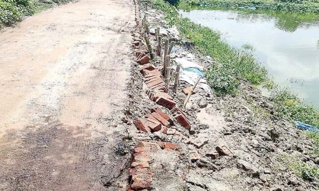 মুরাদনগরে পুকুর ও খাল খননের কারনে ভেঙ্গে যাচ্ছে গ্রামীন সড়ক