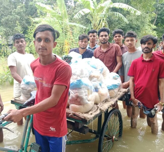 মোহাম্মদপুর উত্তর পাড়া যুব সমাজ ও প্রবাসীদের উদ্যেগে বন্যার্তদের মাঝে এান সামগ্রী বিতরন