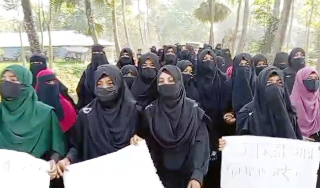 স্থানীয় সূত্রে জানা যায়, অভিযুক্ত সহসুপারের বিচার ও পদত্যাগী সুপার জামাল উদ্দিনের পূর্ণবহালের দাবিতে রোববার সকালে ওই মাদরাসার ছাত্রীরা মাদরাসা প্রাঙ্গণে বিক্ষোভ মিছিল ও মানববন্ধন করেছেন।