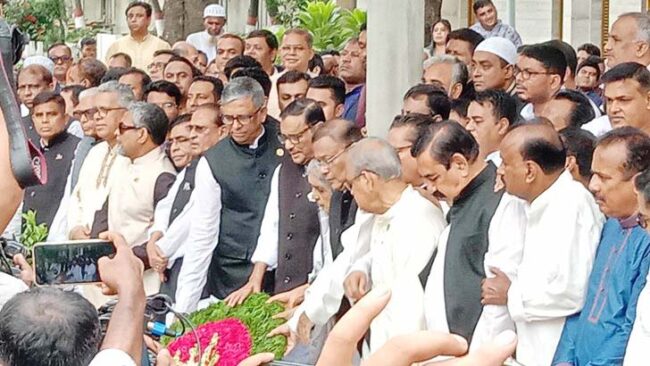 ষ্টাফ রিপোর্টার ॥ আওয়ামী লীগ সাধারণ সম্পাদক এবং সড়ক পরিবহণ ও সেতুমন্ত্রী ওবায়দুল কাদের বলেছেন, রাজনীতির অঙ্গনে বিএনপি হচ্ছে ভয়ংকর এক বিষফোড়া। এ বিষফোড়া যতদিন আছে ততদিন হত্যা, ষড়যন্ত্র, সন্ত্রাস, যত প্রকার অশান্তি, অস্থিরতা-সবকিছু থাকবে। ৭৫ তাদেরই সৃষ্টি। মাস্টারমাইন্ড জিয়াউর রহমান। ৩ নভেম্বর, মাস্টারমাইন্ড জিয়াউর রহমান। একুশে আগস্ট, মাস্টারমাইন্ড তারেক রহমান। হাওয়া ভবনের যুবনেতা। গত শনিবার বঙ্গবন্ধু শেখ মুজিবুর রহমানের বড় ছেলে শেখ কামালের ৭৪তম জন্মবার্ষিকীতে বনানী কবরস্থানে তার সমাধিতে শ্রদ্ধা শেষে তিনি এসব কথা বলেন।