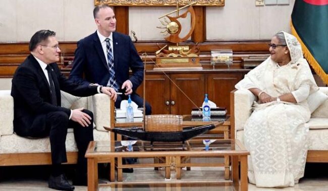 মঙ্গলবার গণভবনে প্রধানমন্ত্রী শেখ হাসিনার সঙ্গে সাক্ষাৎ করে পারমাণবিক বিদ্যুৎকেন্দ্র নিয়ে আলোচনা করেছেন রুশ রাষ্ট্রীয় পরমাণু শক্তি করপোরেশন রসাটমের মহাপরিচালক আলেক্সি লিখাচেভ।