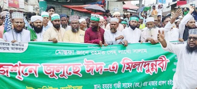বক্তারা তাদের বক্তব্যে বলেন, পবিত্র ঈদে মিলাদুন্নবী (সা.) মুসলিম উম্মাহর জন্য আত্মশুদ্ধি ও হেদায়েতের বার্তা বয়ে আনে। রাসূলুল্লাহ (সা.) এর জীবনাদর্শ অনুসরণই পারে দুনিয়া ও আখেরাতের মুক্তির পথ দেখাতে। দিনব্যাপী এই আয়োজনে ইসলামি সঙ্গীত, দরুদ পাঠ এবং ধর্মীয় আলোচনার মধ্য দিয়ে ঈদে মিলাদুন্নবী (সা.) পালন করা হয়।