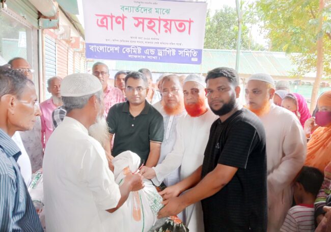 নিজস্ব প্রতিনিধি\ বাংলাদেশ কেমিস্ট এন্ড ড্রাগিস্ট সমিতি লাকসাম শাখার উদ্যোগে বন্যার্ত দেড়শ পরিবারের মাঝে ত্রাণ সহায়তা বিতরণ করা হয়েছে।