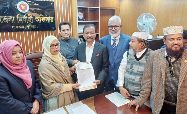 নিজস্ব প্রতিনিধি\ কুমিল্লা-৯ আসনে বিএনপি মনোনীত ধানের শীষ প্রতীকের প্রার্থী মোঃ আবুল কালাম মনোনয়নপত্র জমা দিয়েছেন। গত ২৯শে ডিসেম্বর দুপুর ১২টায় লাকসাম উপজেলা নির্বাহী অফিসারের কার্যালয়ে তিনি আনুষ্ঠানিকভাবে মনোনয়নপত্র দাখিল করেন। এ সময় উপজেলা নির্বাহী অফিসার নার্গিস সুলতানা ও উপজেলা নির্বাচন কর্মকর্তা নুসরাত জাহান তার কাছ থেকে মনোনয়নপত্র গ্রহণ করেন। মনোনয়নপত্র দাখিলকে কেন্দ্র করে বিএনপি ও অঙ্গ সংগঠনের নেতাকর্মীদের মধ্যে উৎসাহ-উদ্দীপনা লক্ষ্য করা গেছে।