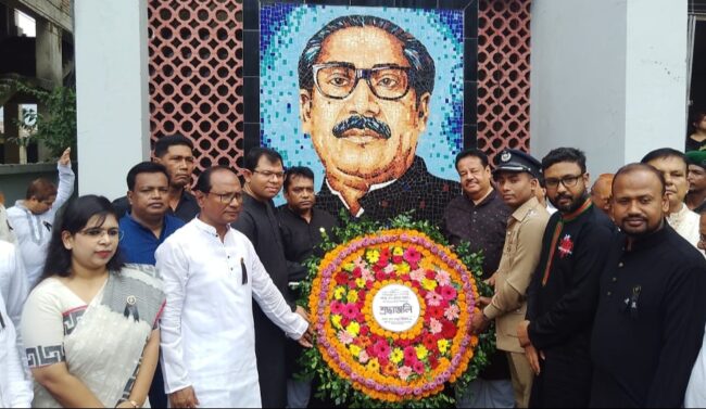 ষ্টাফ রিপোর্টারঃ ১৫ই আগস্ট জাতীয় শোক দিবস উপলক্ষে লাকসাম উপজেলা, পৌরসভা আওয়ামী লীগ ও সহযোগী সংগঠনের আয়োজনে দিনব্যাপী নানা কর্মসূচি পািলত হয়েছে। কর্মসূচির মধ্যে সকাল ৬টায় জাতীয়, দলীয় ও কালো পতাকা উত্তোলন, কালোব্যাজ ধারণ, সকাল ১০টায় বঙ্গবন্ধুর প্রতিকৃতিতে পুষ্পার্ঘ্য অর্পণ, সকাল সাড়ে ১০টায় আওয়ামী লীগ কার্যালয়ে কোরআন খনি – মিলাদ মাহফিল দোয়া ও আলোচনা সভা অনুষ্ঠিত হয়েছে।