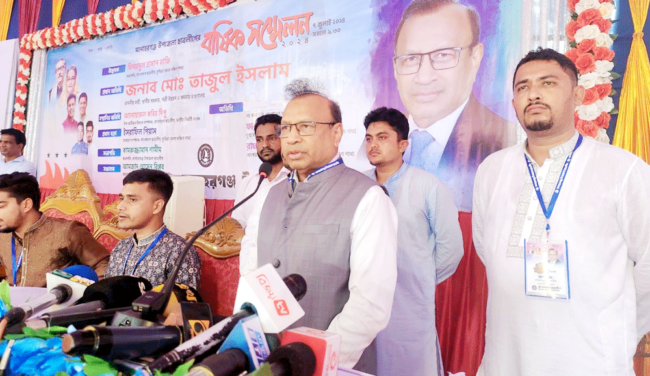 ষ্টাফ রিপোর্টার\ স্থানীয় সরকার পল্লী উন্নয়ন ও সমবায় মন্ত্রী মো. তাজুল ইসলাম বলেছেন, স্বাধীনতা যুদ্ধের সময় যারা বাংলাদেশ চাননি, বঙ্গবন্ধুকে হত্যার পর ২১ বছর পর্যন্ত তাদের হাতেই বাংলাদেশ ছিল। যার ফলশ্রæতিতে বাংলাদেশের মানুষের আকাঙ্খা ও স্বপ্ন পূরণ হয়নি। বঙ্গবন্ধু কন্যা শেখ হাসিনার সরকার ক্ষমতায় আসার পর ভিক্ষুকের জাতির বদনাম ঘুচিয়ে উন্নয়নশীল দেশ হিসেবে স্বীকৃতি পেয়েছে বাংলাদেশ। বাংলাদেশ আজ বিশ্বের বুকে মর্যাদার সঙ্গে টিকে আছে।