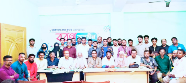 ষ্টাফ রিপোর্টার\ লাকসাম প্রেস ক্লাবের নবাগত সদস্যদের বরণ গত বৃহস্পতিবার (১৪ই নভেম্বর) রাতে বিএস টাওয়ারের দ্বিতীয় তলায় প্রেস ক্লাবের অস্থায়ী কার্যালয়ে অনষ্ঠিত হয়েছে। পবিত্র কোরআন তেলাওয়াত ও গীতা পাঠের মাধ্যমে প্রেস ক্লাবের নবাগত সদস্যদের ফুল, কলম ও ডায়েরি দিয়ে বরণ করা হয়। লাকসাম প্রেস ক্লাবের প্রবীণ-নবীণ সদস্যদের আগমনে অনুষ্ঠানস্থল সাংবাদিকদের মিলন মেলায় পরিণত হয়।