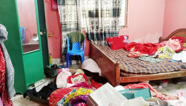 তিনি আরো বলেন, ‘হাসপাতালে আমার শাশুড়ি থেকে শুনেছি, ডাকাতরা প্রথমে আমার শ্বশুরকে কুপিয়ে জখম করলে তিনি অজ্ঞান হড়ে পড়েন। এরপর আমার দেবরকে টয়লেটে নিয়ে জবাই করতে চাইলে আমার শাশুড়ি চিৎকার করে ডাকাতদের পায়ে ধরে ছেলেকে প্রাণে রক্ষা করেন। ওই সময় ডাকাতরা আমার শাশুড়িকেও মারধর করেন। সকালে বাড়িতে এসে দেখি, ঘরের প্রতিটি রুমের মেজেতে আমার শ্বশুরের রক্ত লেগে আছে। ডাকাতরা আমার করে তালা ভেঙে সব তছনছ করে ফেলছে।’