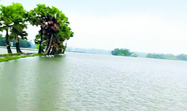 লালমাইয়ে বন্যায় ভেসে গেছে প্রায় ৪ কোটি টাকার মাছ
