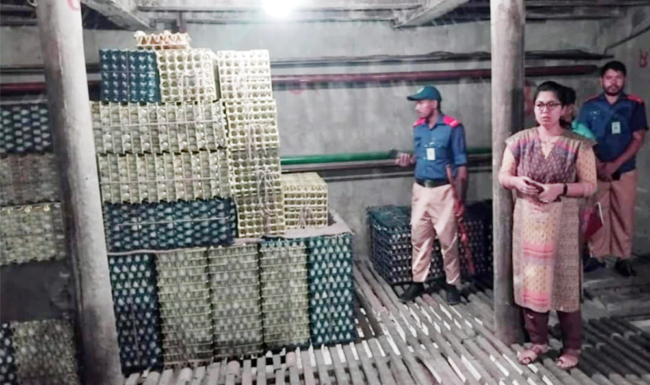 তিনি আরও বলেন, ‘কৃষি বিপণন আইন অনুযায়ী, ডিমের ক্ষেত্রে সরকারি অনুমোদন সাপেক্ষে সর্বোচ্চ ১০ থেকে ১৫ দিন মজুদ রাখা যায়। এখানে গিয়ে দেখা গেছে, মাসের পর মাস ধরে মজুদ করা হয়েছে। তার মানে এসব অবৈধ মজুদ। এর আগেও এই কোল্ডস্টোরেজ থেকে ২১ লাখ ডিমের অবৈধ মজুদ জব্দ করে বাজারে পাঠানোর নির্দেশনা দেয়া হয়েছিল।’