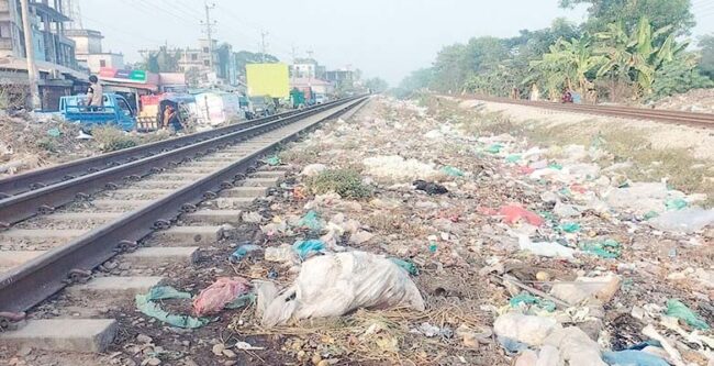 নিজস্ব প্রতিনিধি\ এই যেন দুর্গন্ধময় এলাকা। সাধারণ মানুষ হেঁটে যেতেও নাকে ধরতে হয়। দুর্গন্ধে পেট ফুলে আসে। যে কোন সময় ঘটে যেতে পারে ভয়াবহ দুর্ঘটনা। রেলসড়কের পাশেই বাইপাস সড়ক দিয়ে চলাচল করা কষ্টকর হয়ে পড়েছে। কুমিল্লা জেলার লালমাই উপজেলার বাগমারা বাজারের চিত্র এটি। বাজারের সকল ময়লা আবর্জনা ব্যবসায়ীরা এখানেই পেলেন। রেল কর্তৃপক্ষের কোন প্রকার নজরদারি নেই বললেই চলে। পাশাপাশি পরিবেশ বিপর্যস্ত হলেও নীরব রয়েছেন পরিবেশ অধিদপ্তরের লোকজন।