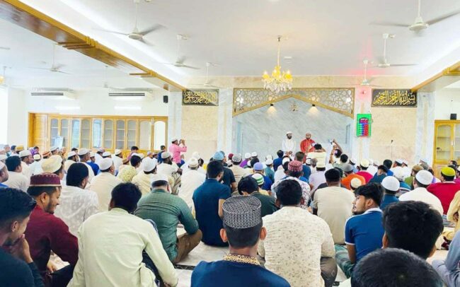 খান মোহাম্মদ রুবেল হোসেন\ গত শুক্রবার (১লা আগষ্ট) পবিত্র জুম’আর নামাজের মধ্য দিয়ে উপজেলা প্রশাসন, লালমাই এর তত্ত¡াবধানে পরিচালিত মডেল মসজিদের আনুষ্ঠানিক কার্যক্রম শুরু হয়েছে। লালমাই উপজেলা নির্বাহী অফিসার হিমাদ্রী খীসার আন্তরিক প্রচেষ্টায় ইমাম ও খতিব হিসেবে মুফতি কারী মোহাম্মদ তাফাজ্জুল হোসেন, মুয়াজ্জিন ও খাদেম নিয়োগের পর উপজেলা মডেল মসজিদ ও ইসলামিক সাংস্কৃতিক চর্চা কেন্দ্রের কার্যক্রম শুরু হয়। পবিত্র জুম্মার নামাজের পূর্বে উপস্থিত মুসলীদের উদ্দেশ্যে বক্তব্য রাখেন, উপজেলা কৃষি সম্প্রসারণ কর্মকর্তা মোঃ শাহিন হোসেন, লালমাই থানার অফিসার ইনচার্জ মোঃ শহিদুল ইসলাম, বাগমারা দক্ষিণ ইউনিয়ন পরিষদের ভারপ্রাপ্ত চেয়ারম্যান লোকমান হোসেন, ইসলামিক ফাউন্ডেশনের ফিল্ড সুপারভাইজার মোঃ মোস্তফা কামাল।