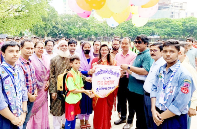 প্রতিযোগীতায় জেলার ১৭টি উপজেলা পর্যায়ে বিজয়ী দল ফুটবল বালক-বালিকা, হ্যান্ডবল, কাবাডি, সাঁতার এবং দাবা প্রতিযোগিতায় দল ভিত্তিক অংশ গ্রহণ করছে। উদ্বোধনী ম্যাচে মুরাদনগর উপজেলা মেটংঘর ব্যারিষ্টার রফিকুল ইসলাম মিয়া উঁচ্চ বিদ্যালয় দলকে ট্রাইব্রেকারে ৪-২ গোলে পরাজিত করে আদর্শ সদর উপজেলা বিবির বাজার হাই স্কুল এন্ড কলেজ।