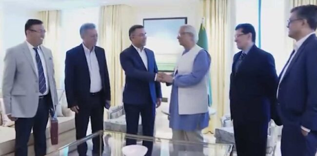 শুক্রবার (১৩ই জুন) লন্ডনে স্থানীয় সময় সকাল ৯টা থেকে বেলা সাড়ে ১১টা পর্যন্ত ডরচেস্টার হোটেলে বৈঠক করেন প্রধান উপদেষ্টা ও বিএনপির ভারপ্রাপ্ত চেয়ারম্যান। বৈঠক শেষে দু’জনের অনুমতিতে যৌথ বিবৃতি পাঠ করেন নিরাপত্তা উপদেষ্টা খলিলুর রহমান। এ সময় বিএনপির স্থায়ী কমিটির সদস্য আমীর খসরু মাহমুদ চৌধুরী ও প্রধান উপদেষ্টার প্রেস সচিব শফিকুল আলম উপস্থিত ছিলেন।