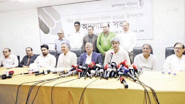 গত রোববার জাতীয় প্রেস ক্লাবের আবদুস সালাম হলে আয়োজিত আলোচনা সভায় তিনি এসব কথা বলেন। বিশ্ব মুক্ত গণমাধ্যম দিবস উপলক্ষে সম্পাদক পরিষদের উদ্যোগে আয়োজিত এই সভায় বিভিন্ন জাতীয় দৈনিক সংবাদপত্রের সম্পাদকরা অংশগ্রহণ করেন।