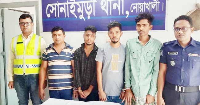 গত শনিবার দুপুরে গ্রেপ্তারকৃত আসামিদের বিচারিক আদালতের প্রেরণ করা হয়েছে। গ্রেপ্তারকৃতরা হচ্ছেন, সোনাইমুড়ী উপজেলার নদনা ইউনিয়নের দক্ষিণ শাকতলা গ্রামের নুরুল হকের ছেলে জাকির, একই গ্রামের নূর ইসলামের ছেলে আরমান হোসেন, পাঁচবাড়িয়া গ্রামের জসিম উদ্দিনের ছেলে হৃদয় ও ভাওরকোট গ্রামের সিরাজুল ইসলামের ছেলে ফিরোজ আলম।