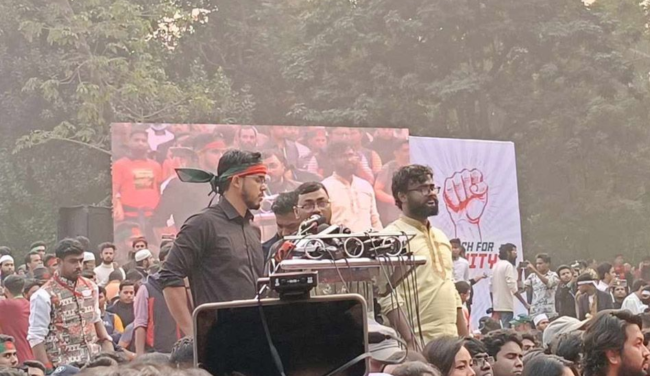‘তুমি কে আমি কে বাংলাদেশ বাংলাদেশ’; ‘আবু সাঈদ মুগ্ধ, শেষ হয়নি যুদ্ধ’; ‘দিল্লি না ঢাকা, ঢাকা ঢাকা’; ‘ক্ষমতা না জনতা, জনতা জনতা’— এভাবেই স্লোগানে স্লোগানে বিভিন্ন জায়গা থেকে মিছিল নিয়ে কেন্দ্রীয় শহীদ মিনারে ‘মার্চ ফর ইউনিটি’ সমাবেশে জড়ো হয়েছেন হাজারো মানুষ।