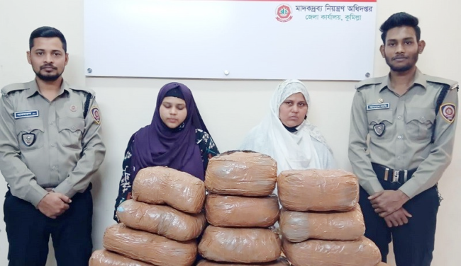 নিজস্ব প্রতিনিধি\ কুমিল্লার বুড়িচং উপজেলার নিমসার বাজার এলাকায় এশিয়া ট্রান্সপোর্ট বাসে অভিযান চালিয়ে ১৬ কেজি গাঁজাসহ ২ নারীকে আটক করেছে ডিএনসি। গত শুক্রবার (১৪ই ফেব্রæয়ারি) সকালে কুমিল্লা মাদকদ্রব্য নিয়ন্ত্রণ অধিদপ্তর (ডিএনসি) উপ-পরিচালক চৌধুরী ইমরুল হাসানের সার্বিক তত্ত¡াবধানে ও উপ-পরিদর্শক মো. মুরাদ হোসেনের নেতৃত্বে বুড়িচং উপজেলার মোকাম ইউনিয়নে ঢাকা-চটগ্র্রাম মহাসড়কে অভিযান চালিয়ে কুমিল্লা থেকে ঢাকাগামী এশিয়া ট্রান্সপোর্ট যাত্রীবাহী বাসে তল্লাশি করে ১৬ কেজি গাঁজাসহ মোসা. রুনু আক্তার (৩৭) ও আঞ্জুমান আক্তার সুমাইয়াকে (২০) আটক করা হয়। আটককৃত নারী রুনু আক্তার (৩৭) কুমিল্লা কোতয়ালী থানার মুরাদপুর মৃত. চারু মিয়ার মেয়ে। অপর নারী আঞ্জুমান আক্তার সুমাইয়া (২০) একই থানার মৃত সুমন মিয়ার মেয়ে ও রাব্বি হোসেনের স্ত্রী। ডএনসি উপ-পরিচালক চৌধুরী ইমরুল হাসান বলেন, প্রাথমিক জিজ্ঞাসাবাদে জানা গেছে, অল্প সময়ে অধিক উপার্জনের লোভে তারা বারবার মাদক বহনের কাজে জড়িয়ে পড়েছেন। আইনশৃঙ্খলা বাহিনীর চোখ ফাঁকি দেয়ার জন্য মাদক ব্যবসায়ীরা কৌশল হিসেবে মহিলাদের মাদক বহনের কাজে ব্যবহার করছেন। আসামিদের বিরুদ্ধে ডিএনসি উপ-পরিদর্শক মোঃ মুরাদ হোসেন বাদী হয়ে বুড়িচং থানায় নিয়মিত মামলা দায়ের করেন।